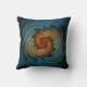 Gooi een kussen met 'Knibbelen in de Duistere' een abstract ontwerp van Susan Wallace. Copyright © 2008, Susan Wallace. Razor bewerkte spiraal van levendig sinaasappel op een getextureerde blauwe achtergrond van turquoise.