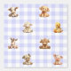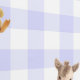 Pluche knuffel boerderij dierlijk speelgoed op lavendel plaid voor baby meisje kinderkamer behang ©DecampStudios & OctopusArts