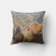 Dit kussen toont kippen die in de late middagzon roddelen. Dezelfde afbeelding aan beide zijden, maar met een licht verschillende hoek.