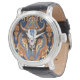 Koe Head Tooled Leather Damask design decoratieve westerne stijl horloge in bruine, bruine en denim blauwe kleuren. Een rustiek oud wild west geïnspireerd kunstwerk perfect voor iedereen die houdt van het land westerne ranch lifestyle. Perfect voor elke cowboy!