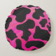 Koe Hot-roze en zwart afdrukken Rond Kussen