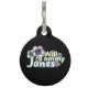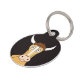 een stoned koe i.d.-label gemaakt door gjDesigns | De hanger heeft een afbeelding van een stoned koe op de voorzijde en een bloemig Will Tommy Jones-logo op de achterzijde.