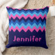 Een groot, monogram gooi kussen met een helder, kleurrijk patroonontwerp van blauwe en roze chevrons. Creëer Het perfecte aangepaste geschenk door op de knop "Gepersonaliseerd" te klikken om een naam of aangepast bericht toe te voegen in het veld sjabloon. Selecteer de link "klik om verder aan te passen" om het lettertype, de tekstgrootte en meer te wijzigen.