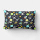 Een kussen met een schattig en kleurrijk patroon met allerlei buitenruimte thema elementen. Afbeeldingen zijn astronauten die rondzweven in hun witte ruimtepakken. Sterren en planeten en koele kleine raketschepen, ruimteschepen en satellieten. Leuk en gek design.