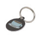 Chocolade bruin en blauw grijs koffiekopje & lepel op een lichtlavendere grijze achtergrond.