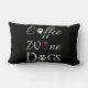 Voeg een leuke aanraking toe aan elke kamer met deze lumbale kussen die perfect zijn voor degenen die van koffie, wijn en honden houden. Het ontwerp van de lumbale kussen bevat een fancy tekst voor koffie met een kopje koffie voor de letter "o", wijn die een glas rode wijn bevat voor de letter "i", en honden met een poetafdruk ter vervanging van de letter "o". Extra cadeauobjecten zijn ook bij dit ontwerp beschikbaar.