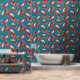 Decoratief Koi vispatroon op een blauwe achtergrond.