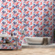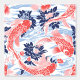 Dit naadloze motief is voorzien van rood-oranje koi-vissen met delicate witte contouren, elegant zwemmend tussen donkerblauwe bloemenelementen in een serene vijver afgebeeld in wit en lichtblauw. Geïnspireerd door Japanse kunst, vangt het ontwerp de rustige schoonheid van een traditionele koi vijver scene, het mengen van natuurlijke motieven met artistieke gratie.