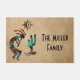 Pas dit unieke 'Een van een soort' Southwest Kokopelli Doormat aan! Het is voorzien van een Zuidwest Kokopelli in Turquoise, Oranje en zwart die de Flute en Dansend rond een Cactus onder de zon spelen...op een Tan Leather-achtergrond! Dit is een origineel 'Een van de soorten' Kunstontwerp van artistieke Kerry Miller.