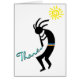 Dit "Kokopelli — Native American Flute Player"-ontwerp maakt een leuke kaart om als geschenk te geven of voor jezelf te houden. De Kokopelli komt uit de Zuidwest-Indiërs en kan gevonden zijn in de stammen Zuni, Hopi of zelfs Aztec. In sommige inheemse Amerikaanse culturen is Kokopelli geassocieerd met de regen, de geest van de muziek, en hij is ook de bedriegergod. Met de woorden "Bedankt" die uit de Kokopelli-flute komen, kietelt deze notitiekaart zeker de woorden waar u hem naartoe stuurt.