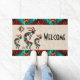 Pas dit unieke 'Een van een soort' Southwest Kokopelli Doormat aan! Het is voorzien van een drie Kokopelli die de Flute en Dansend onder de Zon op een Tan Sandstone-achtergrond speelt... omringd door een zuidwestgrens in Turquoise, Oranje en zwart. Dit is een origineel kunstontwerp van artiest Kerry Miller.