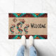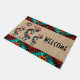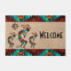 Pas dit unieke 'Een van een soort' Southwest Kokopelli Doormat aan! Het is voorzien van een drie Kokopelli die de Flute en Dansend onder de Zon op een Tan Sandstone-achtergrond speelt... omringd door een zuidwestgrens in Turquoise, Oranje en zwart. Dit is een origineel kunstontwerp van artiest Kerry Miller.