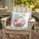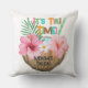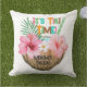 Tropical tiki thema outdoor gooi kussen beschikt over een waterverf kokoscocktail, roze hibiscusbloemen, palmblad en bamboestro met een "It's Tiki Time!" onderschrift. De tekst op de kokosnoot kan worden gepersonaliseerd met de naam van je tiki bar, jouw naam, leuk drink gezegde of wat je boot drijft! Aan de andere kant is een patroon van rustieke, met de hand beschilderde strepen in vrolijke, op het eiland geïnspireerde kleuren (groen, sinaasappel, turquoise, roze en bruin). Kunst door KL Stock