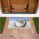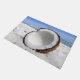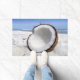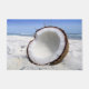 Deze deurmat heeft een stoer afbeelding van een kokosnoot op een strand.