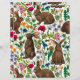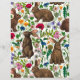 Handgetekende konijnen en bosflora, varens, paddenstoelen en bessen en insecten
