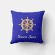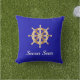 Koninklijk blauw jacht boot naam goud stuurwiel buitenkussen