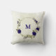 Mooie romantische kussensloop met koninklijk blauwe en beige bloemen en enkele bladeren .