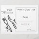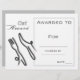 Een onderscheiding met een chef-koksmes en vork met een simpel kookthema-afbeelding, perfect om een jonge kookstudent aan te moedigen. Je kunt in je eigen details schrijven. Een geweldige bron voor een kookschool.