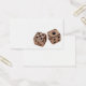 Een paar koperen dobbelstenen op een visitekaartje voor de speler, kaarthaai of smart business persoon.