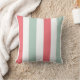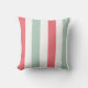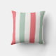 Koraal, blauwgroen en witte brede strepen op een ontwerper werpen kussen. Met gestreept kussens worden grote accentuerdecoraties gemaakt, zowel tegen gekleurde als tegen gekleurde sofa's, stoelen en design in de ruimte. Ideaal voor woonboten, woonkamers, slaapkamers, huisjes en kinderkamers.