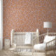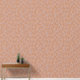 Een prachtige koraalkleurige achtergrond met babyblauwe bloemblaadjes overal, dit behang is perfect voor elke kamer in het huis!