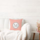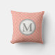 Elegante en eigentijdse perzik sinaasappel roze, grijs en wit klassiek Marokkaans quatrefoil rooster patroon op maat monogram decoratief werpkussen. Volledig aanpasbaar, voeg uw eigen initiaal toe voor een echt uniek woondecoratie-item.
