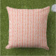 Mooie gooi kussen met moderne koraal oranje zalm en wit gekleurde zigzag chevron vormverfafbijtpatronen. Fun funky trendy outdoor home accent en trending minimalist stijl inspireerden buitenste accessoire voor het versieren van uw veranda, geduld, pooldek of achtertuin in uw strandhuis, landhuisje, logcabine, meer- of riviervakantiehuis. Deze ontwerpstijl past overal en vult vele verschillende decor stijlen aan!