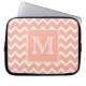Koraalroze en witte Chevron met aangepast monogram Laptop Sleeve