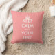 De roze Coral van de douane houdt kalm en jouw tekst gooit kussen.  keepcalmandcarryon sjabloon ontwerp. Creëer je eigen kalm houden en doorgaan met parodie of parodie. Trendy gepersonaliseerd cadeauidee. Koel kussens voor sofa, bed, stoel enz.