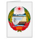 Het embleem volgt de fundamentele ontwerprichtlijnen van het embleem van de Sovjet-Unie, die in veel andere landen, waaronder Noord-Korea, zijn aangenomen en die duidelijk de betrekkingen tussen de communistische ideologie en de stichting van het land aan het begin van de Koude Oorlog aangeven.