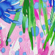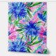 Een naadloos patroon met blauwe en roze korenbloemen met frisgroene bladaccenten, gerangschikt in een waterverf stijl. Het ontwerp combineert levendige bloemenelementen met zachte, artistieke penseelstreken om een levendig en betoverend visueel effect te creëer.