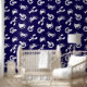 Stijlvol marineblauw behang met grote witte verweerde look krabben en kreeften. Perfect voor een strandbar, restaurant, strandhuis, hut of huisje. Koele kust decor. U kunt de achtergrondkleur wijzigen van marineblauw, naar wat past bij uw ruimte.