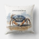 waterverf schilderij van een blauwe en oranje krab die op het strand loopt