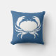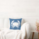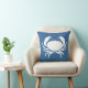 Een deel van de oceaan thema decore CRAB WHITE op blauw kussen aan de ene kant en BLAUW en witte strip aan de achterkant.