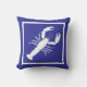 Een witte Zeeen kreeft op een marineblauw kussen voor een zomer- of strandhuis of een plek met een nautisch thema