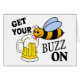 Cute bee die op een ijskoude mok bier tikt en hoopt zijn buzz aan te pakken! En jij ook.
