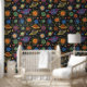 Krijttekening van zonnestelsel op zwart bord behang
