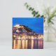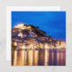 Schilderen van de stad Sibenik in Kroatië. Verlichtde stad met fort, oude gebouwen, zee en blauwe lucht. Harbour van Sibenik, Kroatië 's nachts, uitzicht 's nachts op het blauwe uur op de Fortress van Sint Michael