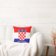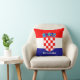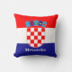 Dit werpt kussen op de vlag van Kroatië met het wapen en aanpasbare tekst in witte lettertypen onderaan.