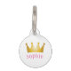 Verwen uw dierbare huisdier met de pracht van onze Crown Pet ID Tag. Dit charmante accessoire heeft een glanzende gouden kroon, passend bij de adel van uw geliefde metgezel. Het is geplaatst tegen een ongerepte witte achtergrond en heeft een aanpasbare naam in een delicate roze tint, en voegt een vleugje zachte royalty's toe. Dit label is een mooi symbool van de gewaardeerde plaats van uw huisdier in uw hart en huis.