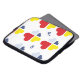 Een kruis wordt gevormd in de negatieve ruimte van vier harten. Vertegenwoordigt de liefde en opoffering van Jezus.
