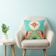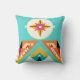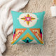 Kussen met inheems-Amerikaans Zuidwest-stamkunstontwerp in traditioneel turquoise en terracotta kleurenpalet met symbolen die door Pueblo, Navajo en andere inheemse Amerikaanse volkeren worden gebruikt om natuurlijke landschappen weer te geven, zoals bergen, de zon en sterren, weer en meer. Dit kleurrijke decoratieve zuidwesterse kussen zal de decoratie van elke westers getinte kamer accentueren.