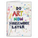Kunstenaars, het is belangrijk om je prioriteiten recht te hebben. Laat deze leuke kaart je eraan herinneren om kunst te maken, het huishouden later. Kunst en design door Victoria Lynn Hall.