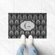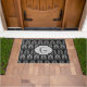 Doormat in een Kunstdeklappatroon met een gestileerde veer - schaduwen van zilvergrijs/grijs op een zwarte achtergrond met aanpasbaar monogram