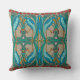 Dit opvallende werpkussen is voorzien van een prachtige aanpassing van een laat 19e eeuws ontwerp van Charles Voysey. 2 blauwe en aqua kranen staan onder paraplu van geranium rode hanenkambloesems bovenop sierlijke smaragdgroene stengels die een Keltisch beïnvloed nest vormen.