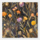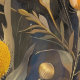 Een stijlvol opvallend ontwerp geïnspireerd op de kunst- en ambachtsbeweging met Schotse distel en wilde bloemen op een donkere achtergrond.
