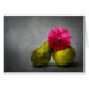 Sluit uitzicht van twee peren achter de rode cocktailparaplu. Het water druppelt om hen heen. De hemel is grijs en het weer is stormachtig