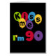 90 draaien? Je zult van onze kus houden, ik ben 90 jaar oud op shirten, mokken, kaarten, stickers, magneten, sleutelhangers en ander 90ste verjaardagscentrum met een heldere meerkleurige ballon en tekstontwerp.
