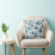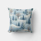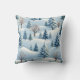 Een kussen met een besneeuwde winterachtergrond. Witte sneeuw en bomen worden afgebeeld.