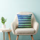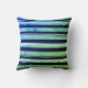 Elegant kussen met dikke en dunne, blauwe en witte strepen.